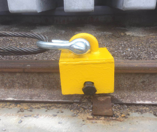 3月14日,在儲(chǔ)運(yùn)車間軌道板成品貨場(chǎng)舉行的“龍門吊突遇強(qiáng)風(fēng)大車抱閘失靈事故應(yīng)急預(yù)案演練”中,車間自制的“龍門吊軌道臨時(shí)固定錨”取得了很好的使用效果。儲(chǔ)運(yùn)車間針對(duì)春季風(fēng)大,容易造成室外起重設(shè)備滑溜險(xiǎn)情的實(shí)際,在公司安全管理人員的指導(dǎo)下,經(jīng)過多次實(shí)地觀察、研究分析,制作了一種在龍門吊軌道任何位置都能快速固定的應(yīng)急固定錨,用于龍門吊運(yùn)行中突遇大風(fēng)時(shí)實(shí)施龍門吊緊急栓固。經(jīng)3月14日儲(chǔ)運(yùn)車間舉行的“龍門吊突遇強(qiáng)風(fēng)大車抱閘失靈事故應(yīng)急預(yù)案演練”試用,有效驗(yàn)證了其適用性。