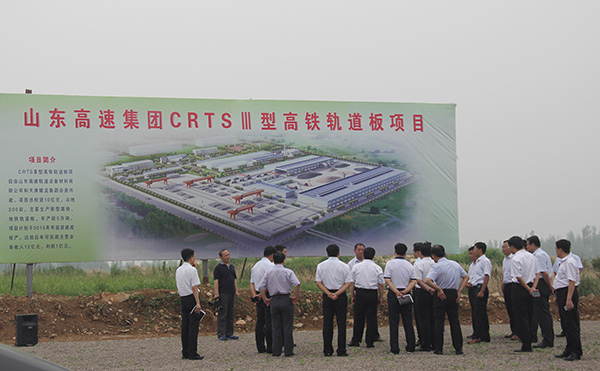 2015年12月16日,山東高速集團(tuán)董事、黨委委員徐軍峰視察公司軌道板場(chǎng)建設(shè)工地